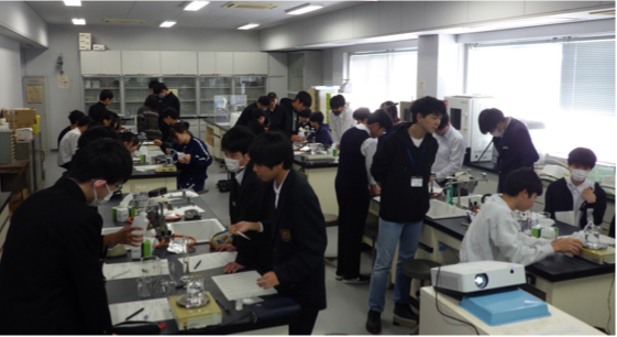 11月1日 土曜日に第2会の『工学と数学の関連性を学ぶワークショップ(密度と濃度)』が行われました.27名の中学3年生が松江高専に来ました。3〜4人で班を作り,協力して密度や質量パーセント濃度の実験をし,楽しみつつ,計算方法について学習しました.最初はみんな緊張してましたが,実験を通して,すぐ仲良くなれたようです.