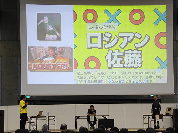 特別講演会では、プログラミング言語Rubyの開発者・まつもとゆきひろ氏と松江高専卒業生による座談会が行われたほか、小中学生向けのプログラミングコンテスト「Matz葉がにロボコン」、石見神楽公演なども実施されました。