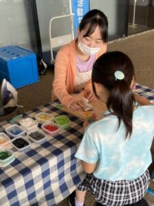 7月12日に松江市役所で行われたファーマーズマーケットに、ペットボトルキャップをアップサイクルするしおりづくりのブースを出展しました。当日は親子連れを中心にたくさんの方に来場いただき、とても盛り上がるイベントになりました。